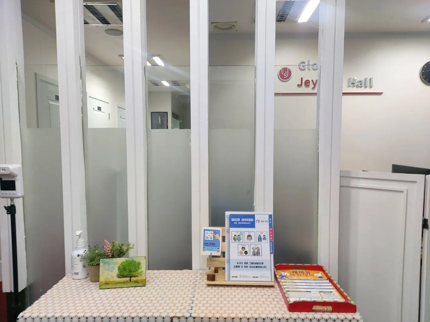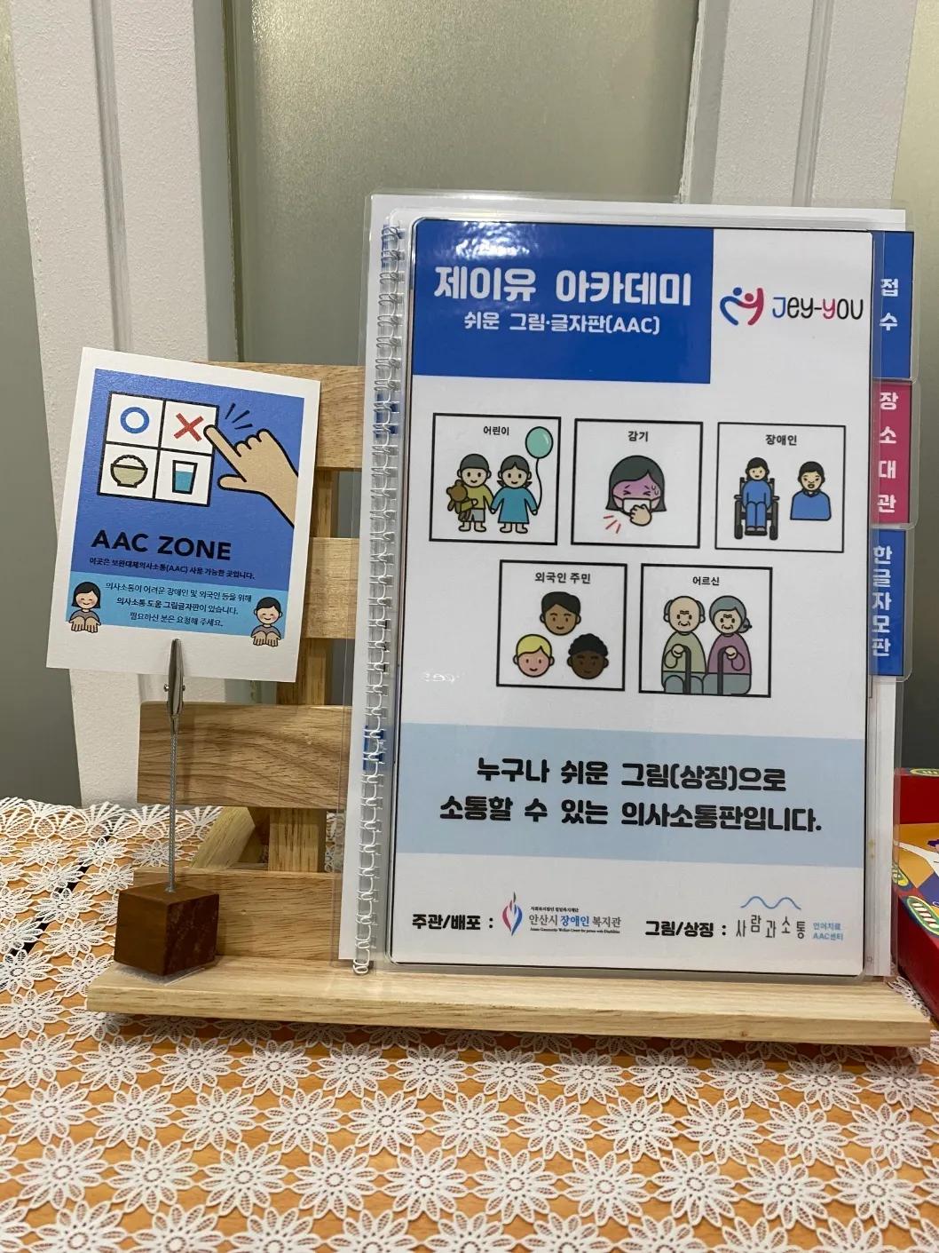 - 입구에서 바로 보이는 정면 테이블에 비치 되어 있습니다.