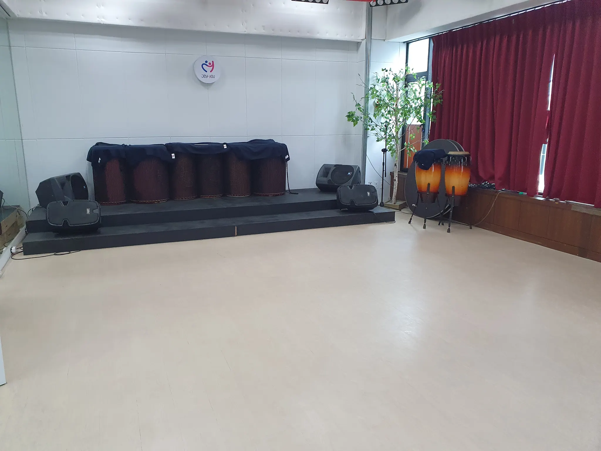 - 대부분의 연습실에 턱이 없으나, 무대가 있는 공간에는 계단 높이의 턱이 있었습니다.