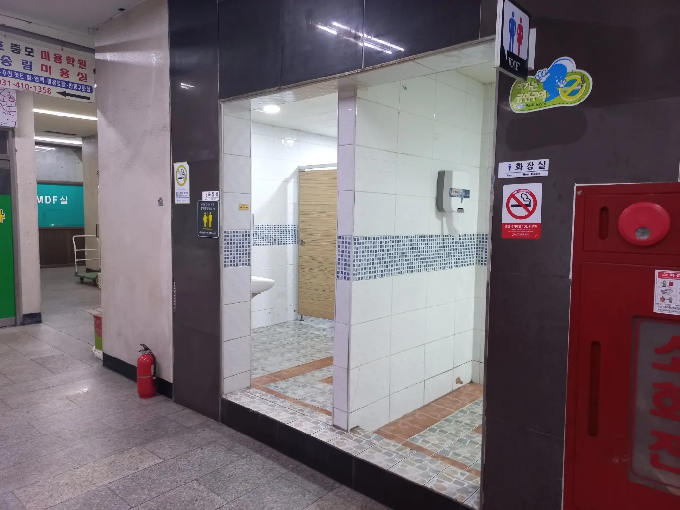 - 건물 내 화장실에는 턱이 10cm정도 있습니다.
