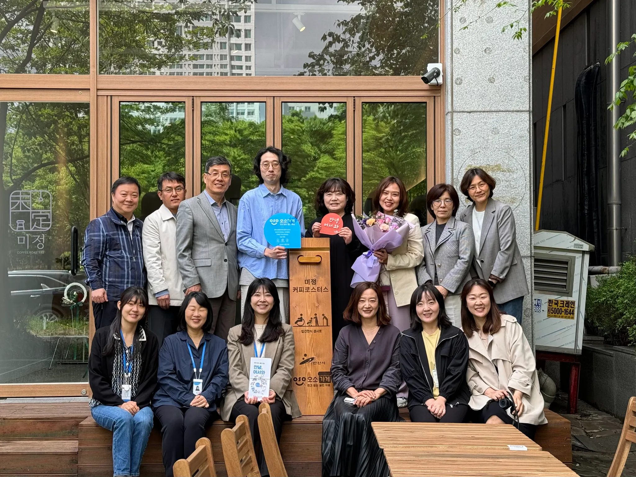 안산시 장애인복지과, 꿈꾸는느림보사회적협동조합, 안산시장애인복지관, 안산시상록장애인복지관이 함께 모여 오소가게로 함께 해주심에 감사 인사를 드리고 축하했습니다.