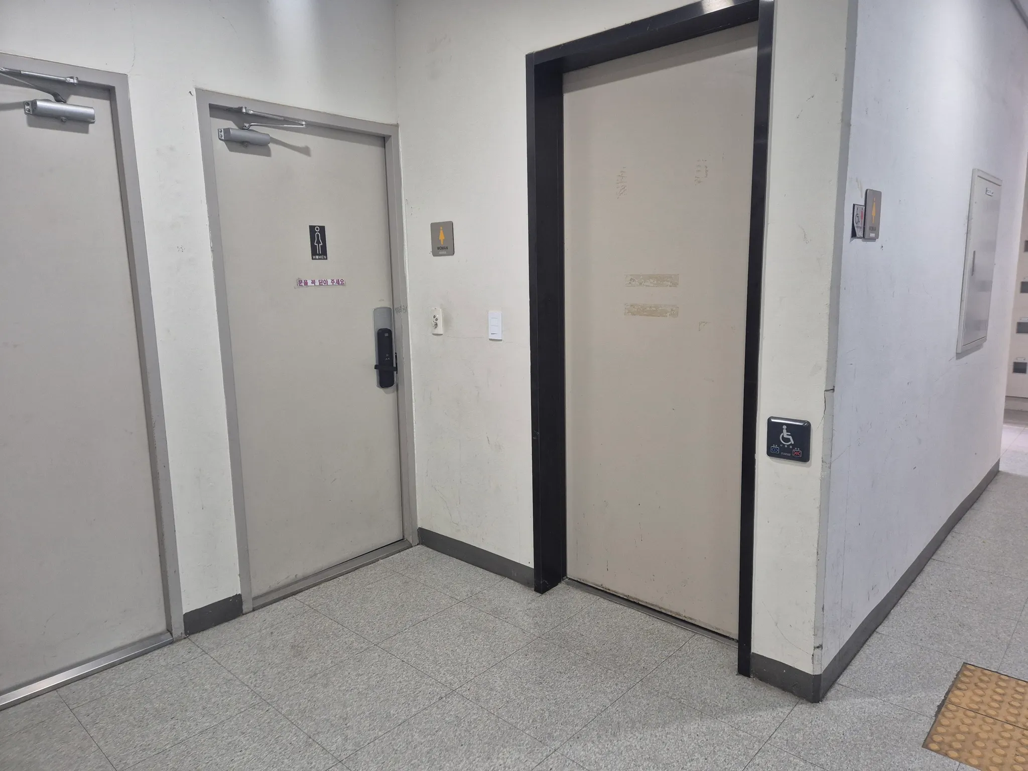 -화장실 내 턱이 없으며, 장애인 전용 화장실이 있습니다.