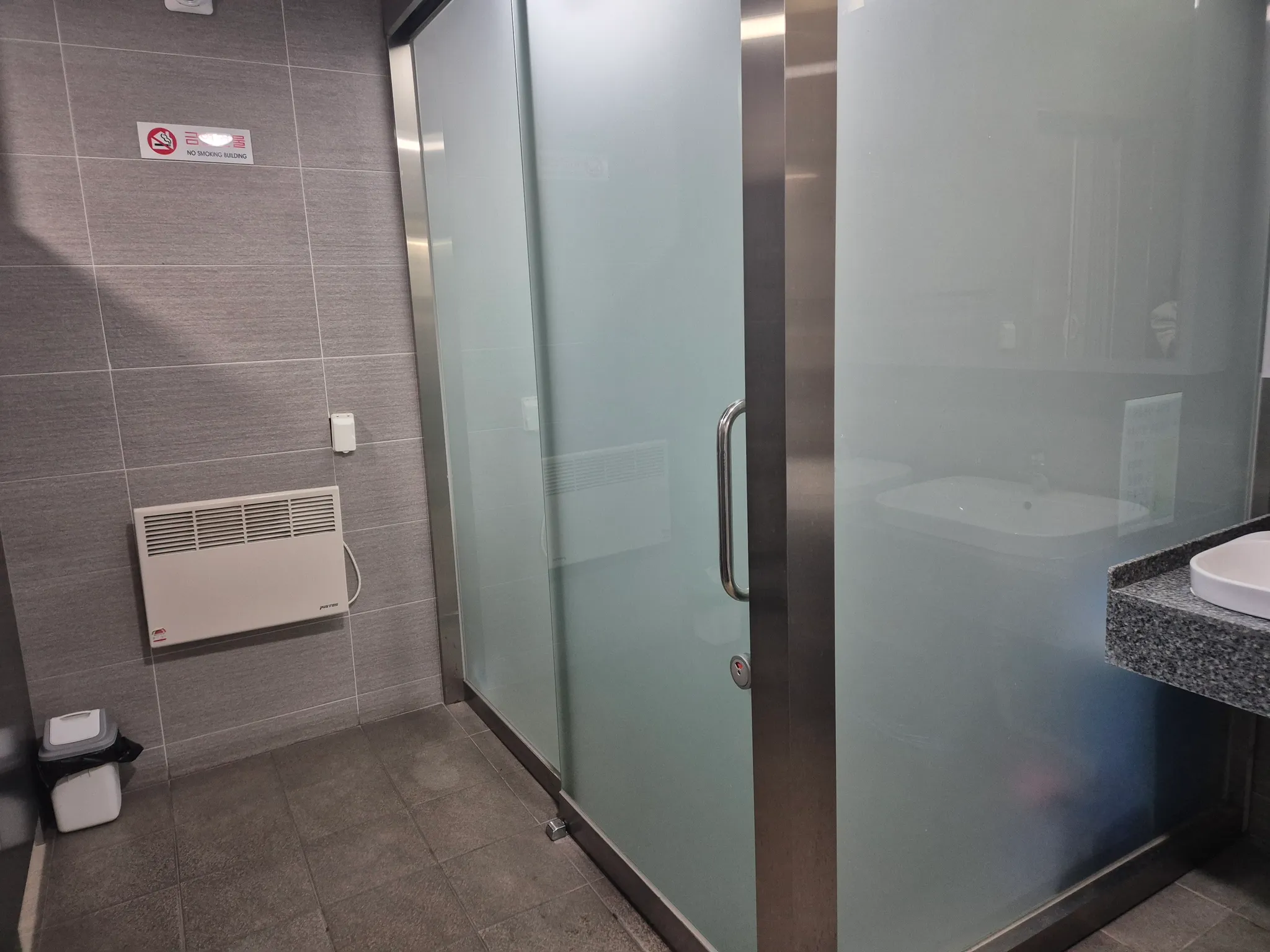 -화장실 내 턱이 없으며, 장애인 전용 화장실이 있습니다.
