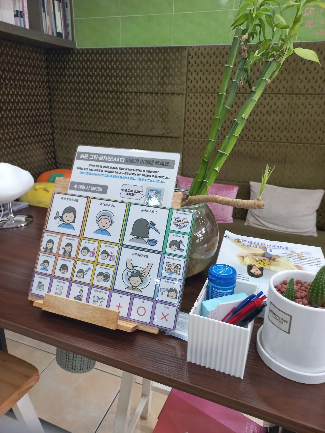 매장 상담테이블에 위치하고 있습니다. 필요 시 사장님에게 요청해 주세요.