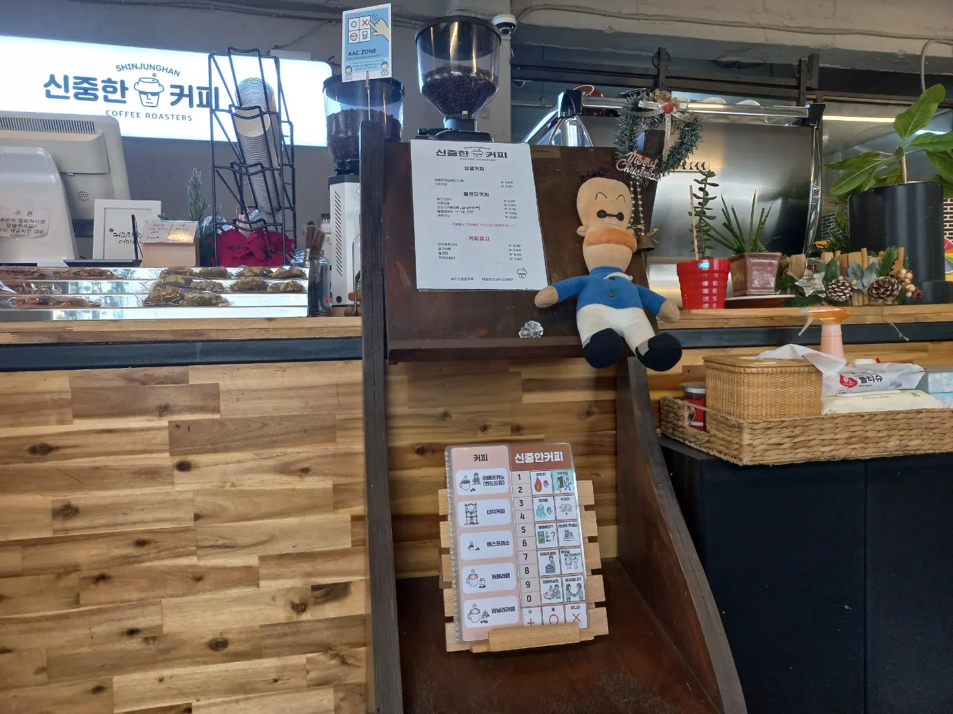 신중한커피는 출입구에 턱이 있지만 출입문은 넓은 편이에요. 주차장 쪽 출입문은 턱이 낮은 편이긴 합니다.