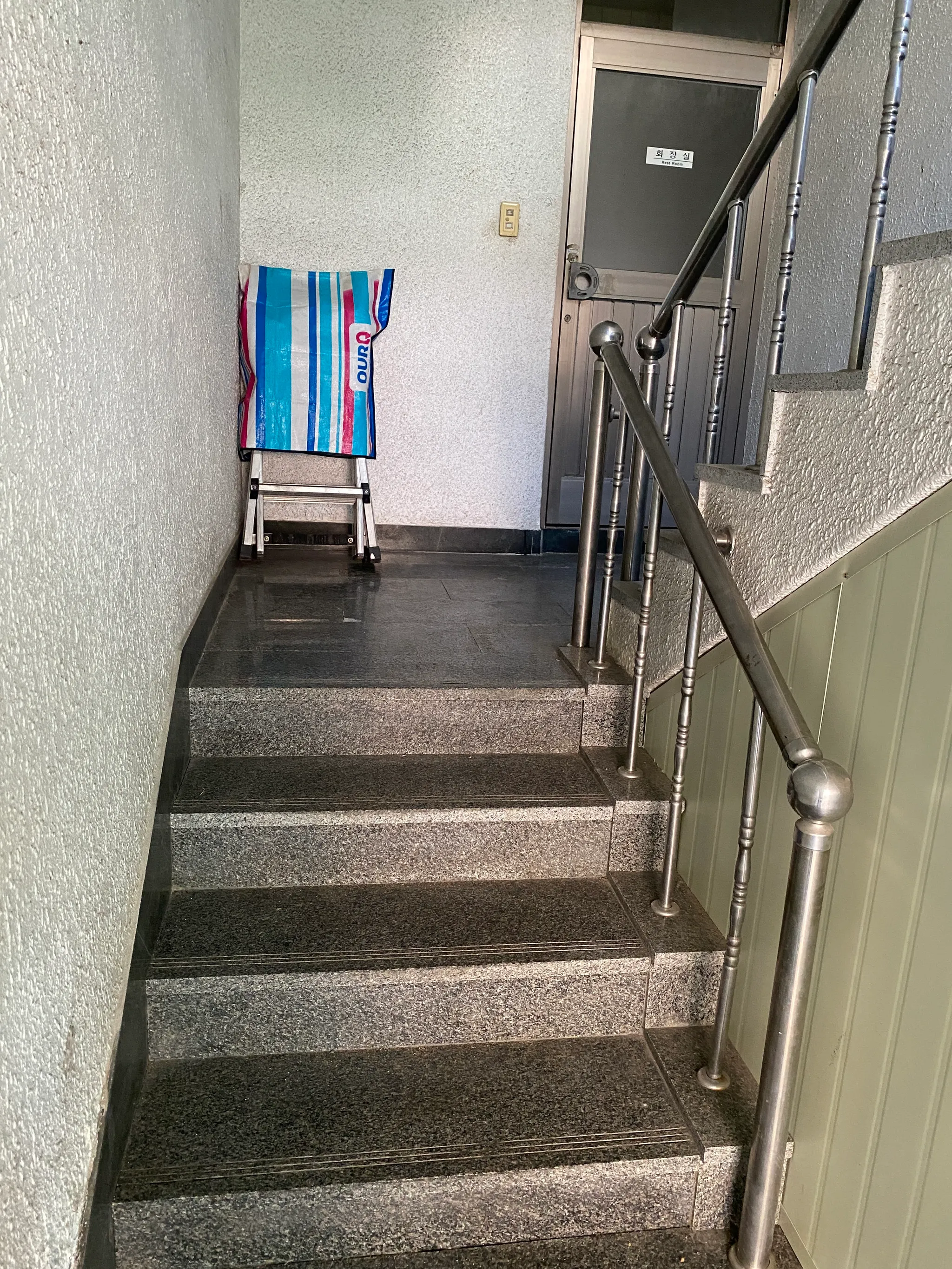 1.5층으로 5계단 오르셔야 화장실 이용할 수 있습니다. 휠체어를 이용하시는 분들은 이용이 어려울 수 있으니 참고해주세요.