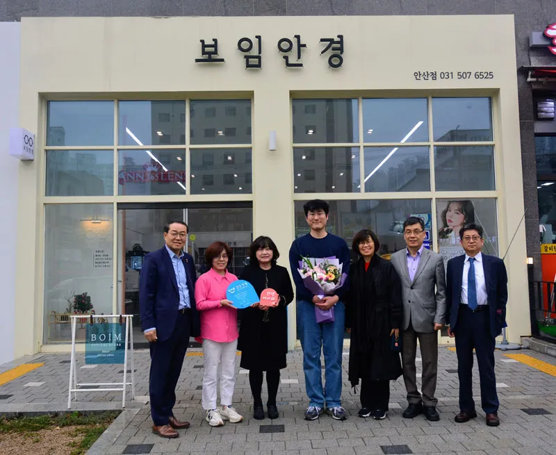 '보임안경'에서 현판식을 할 때 안산시청 장애인복지과, 안산시상록장애인복지관, 안산장애인복지관, 꿈꾸는느림보 사회적협동조합에서 오셔서 축하해주셨습니다. 사장님의 선한 마음에 고마움을 표현했습니다. 함께 해주신 모든 분들께 감사드립니다.
